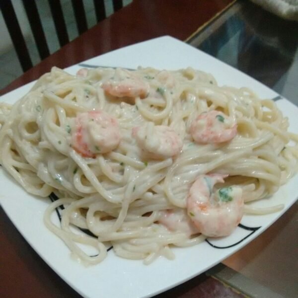 150 gramas de camarão ao molho quatro queijos (Gorgonzola/parmesao/mussarela/prato)
